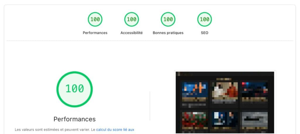 Résultat d’une optimisation technique propre, sans ajout de plugin inutile, basée sur la structure, le code et la configuration du site.
