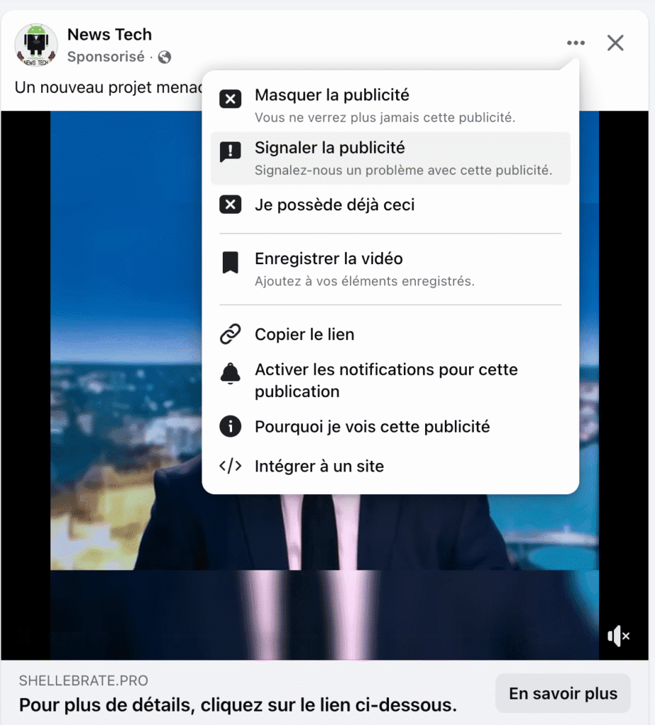 Chaque fois que vous cliquez sur “Signaler”, vous contribuez à assainir l’espace numérique, à renforcer la vigilance collective et à freiner la propagation des fausses publicités IA.