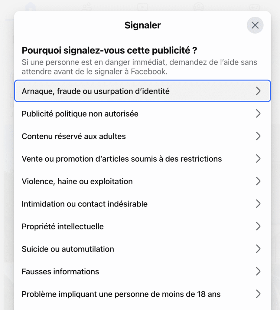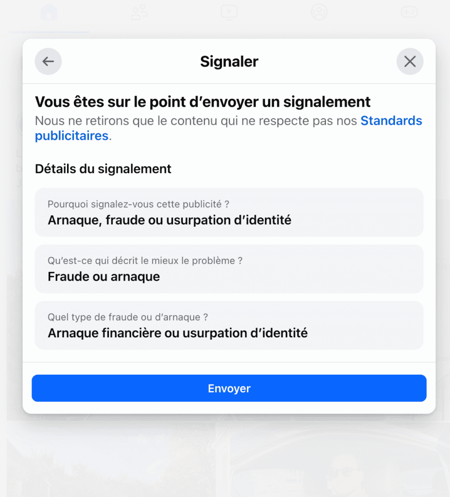 Chaque signalement aide à faire disparaître ces arnaques des fils d’actualité et protège d’autres utilisateurs.